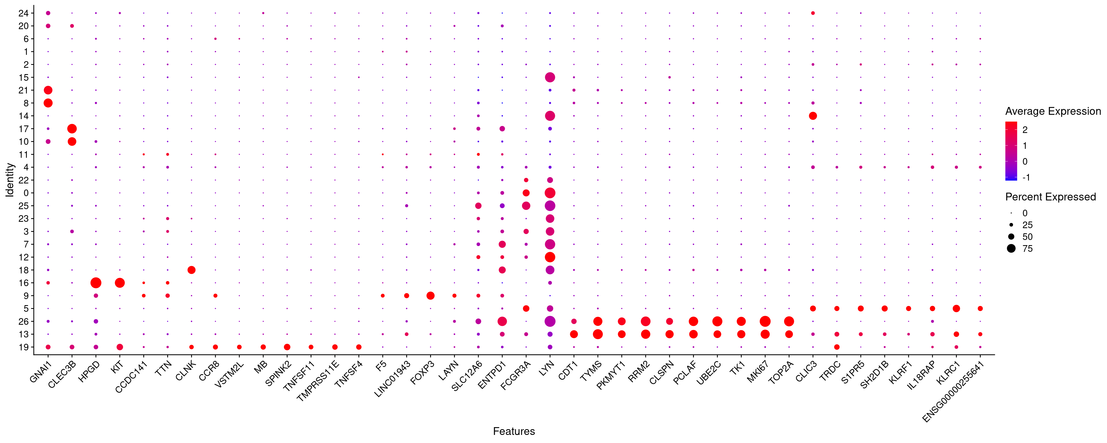 5.5 Plot top markers per cluster as dotplot